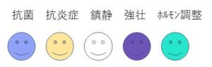 作用:強壮、抗菌、水虫、利尿、ホルモン調整、月経前緊張症、更年期症状